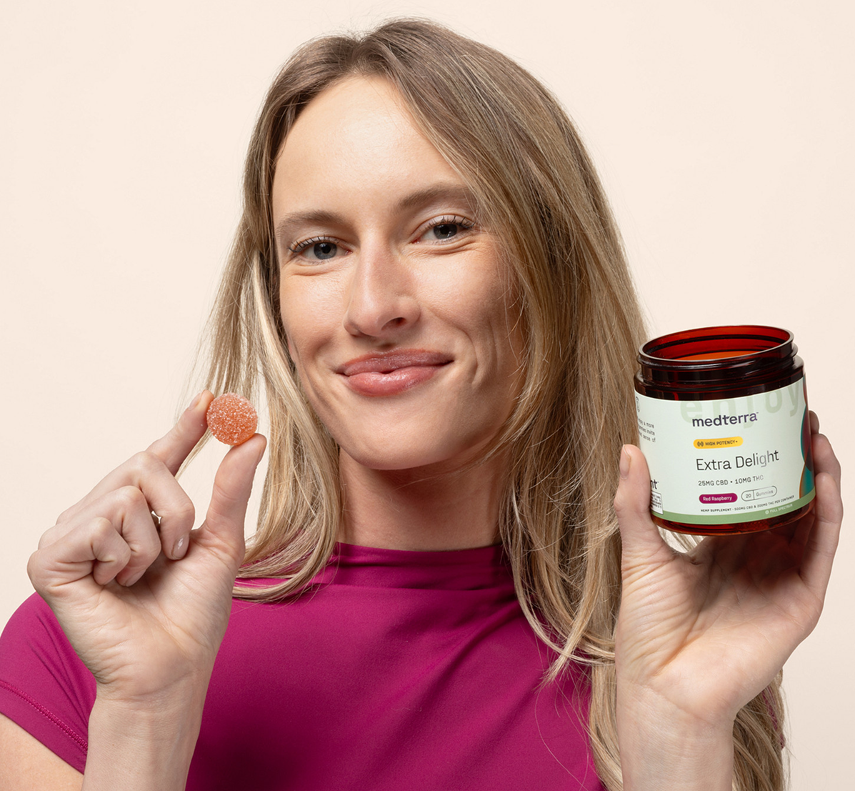 Medterra’s Extra Delight gummies contain 10mg of THC per gummy. This will be perfect for that enhanced feeling of delightfulness that you’re looking for.